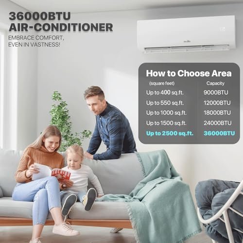 36000 BTU Mini Split AC Heat Pump | 19 SEER2 Smart WiFi | 2500 Sq Ft