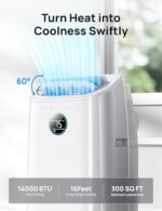 With a robust 14,000 BTU cooling capacity, this portable air conditioner is a powerhouse designed to tackle even the most challenging room temperatures. During our testing, we were impressed by its ability to quickly cool down spaces up to 500 square feet, making it perfect for bedrooms, home offices, and living areas.
