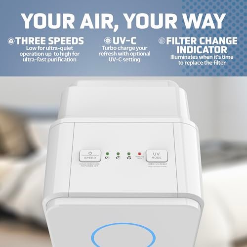 Breathe easier with the GermGuardian AC4300WPT. This powerful 22-inch air purifier captures pet dander, allergens, and odors with its H13 Pet HEPA filter, while UV-C technology helps eliminate airborne germs for a fresher, cleaner home.