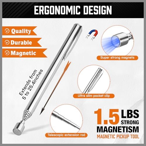 The telescoping pickup tools extend from 7 inches to an impressive 30 inches. We tested this feature in multiple scenarios – retrieving dropped bolts from under a vehicle, grabbing screws from inside HVAC ducts, and fishing out metal components from behind heavy appliances. The smooth extension mechanism locked securely at various lengths without any wobble or collapse issues we’ve experienced with competitor products.