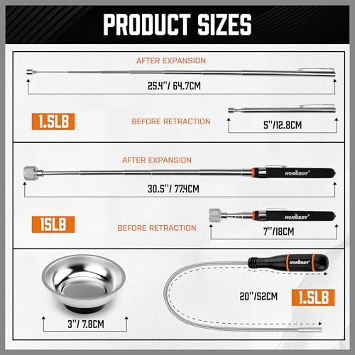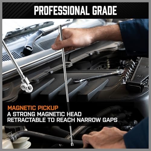 Never lose small metal items again! This 4-pack of HORUSDY telescoping magnetic tools extends, bends, and flexes to reach tight spaces. Strong magnets grab nuts, bolts, and tools from tricky spots—perfect for mechanics, DIYers, and anyone who drops things in hard-to-reach places.