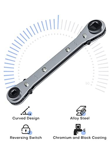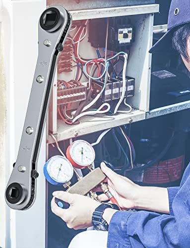 Precision meets performance with this 4-size HVAC ratcheting wrench. Versatile hex bit adapter makes AC, refrigeration, and furnace repairs a breeze. Compact, durable tool for professional and DIY technicians.