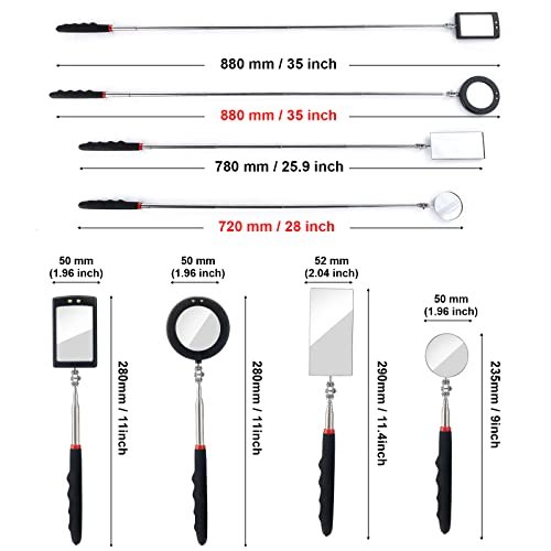 KABUDA LED Telescoping Inspection Mirror Set – Mechanics, Auto, Beauty Tool 4-Pack