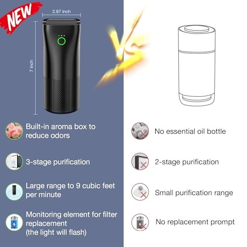 Breathe clean air everywhere with Homintell’s compact car purifier. This sleek black device combines true HEPA filtration with aromatherapy, effectively eliminating smoke, allergens, and odors. Perfect for commuters, allergy sufferers, and smokers on the go.