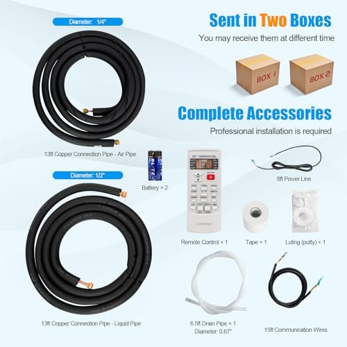 Stay cool and cozy with the RELAX4LIFE Mini Split AC/Heating System! Powerful 9000 BTU inverter unit efficiently cools and heats up to 450 sq.ft, delivering whisper-quiet comfort with energy-saving 17 SEER2 technology and convenient remote control.