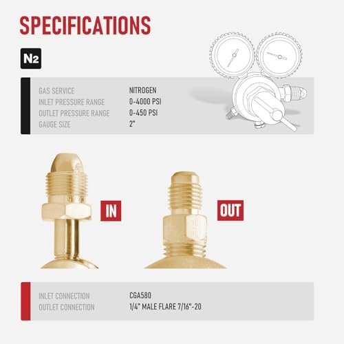 – **CGA580 Inlet Compatibility**: Perfectly fits standard nitrogen tanks with no leaks or connection issues