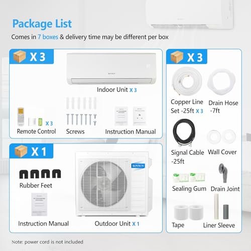 – Includes: Condenser, Indoor Units, Remote Control, 25ft Line Set