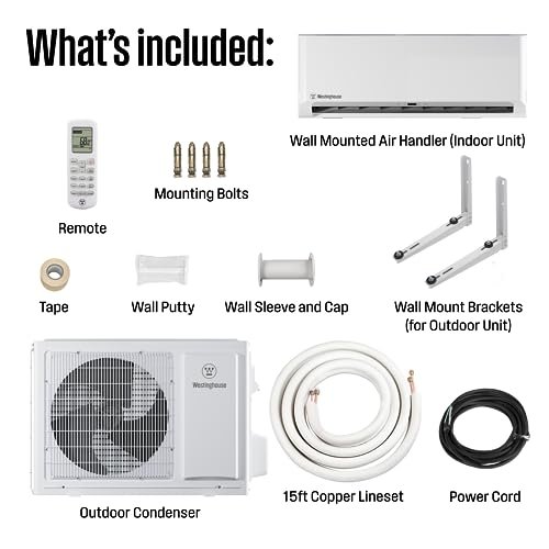 Transform your space with this powerful Westinghouse 12,000 BTU mini-split system that both heats and cools efficiently. With energy-saving 17.5 SEER2 technology and complete installation kit included, enjoy year-round comfort without breaking the bank.
