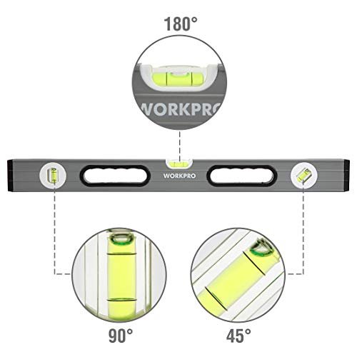 Master precision with WORKPRO’s 3-Piece Torpedo Level Set featuring 9″ magnetic level plus 16″ and 24″ non-magnetic levels. Clear, green bubbles ensure accurate measurements for all your construction and DIY projects—from hanging pictures to major renovations.