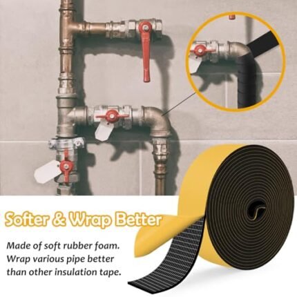 Pipe Insulation Tape, Pipe Wrap Insulation Foam Tape Self Adhesive, Outdoor Water Pipe Insulation, Ac Line Insulation, HVAC Tape, Heat Tape For Water Pipe, 2 inch x 16.5 FT Pipe Insulation Roll,Black